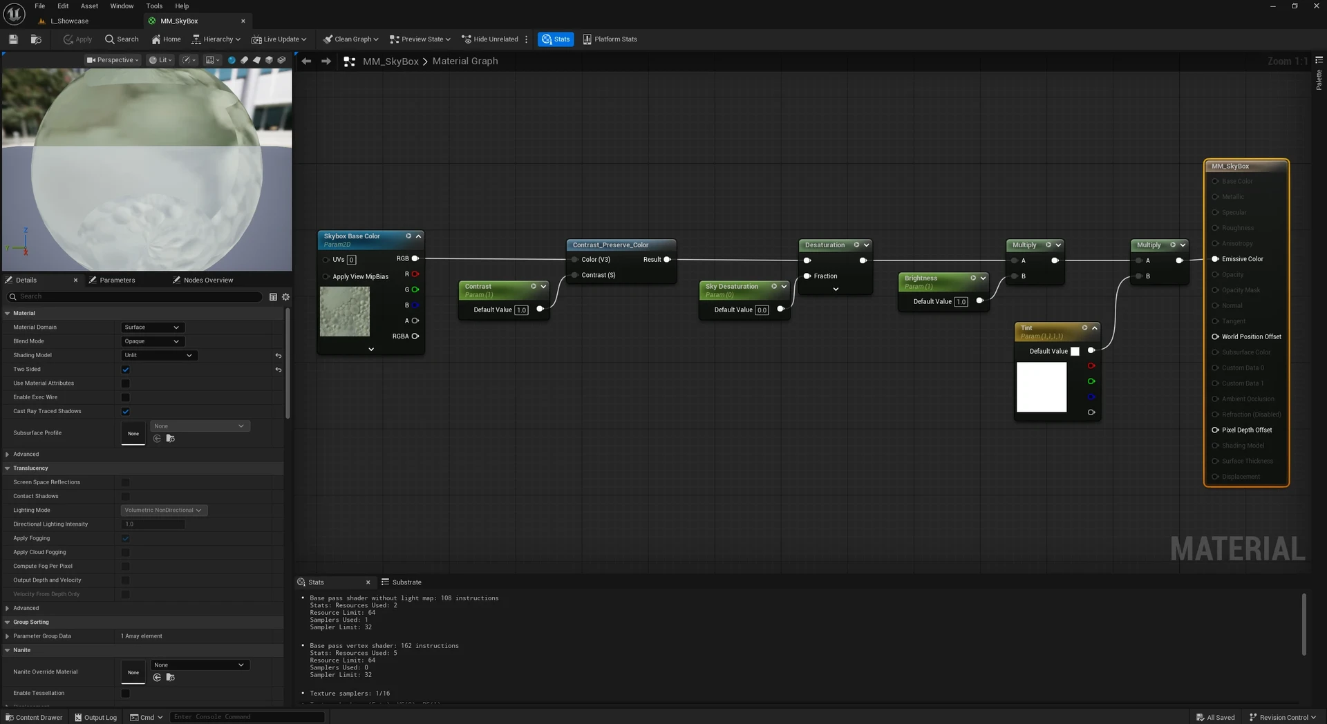 Lumen & Lighting Strategy: Once the foundation was set, I calibrated the hero light to complement the skybox. To keep the scene performant and avoid the "light soup" effect, I relied on Lumen emissive cards with unique materials to bounce light and dress the scene. Spotlights were used sparingly, only to pick out specific architectural details.
